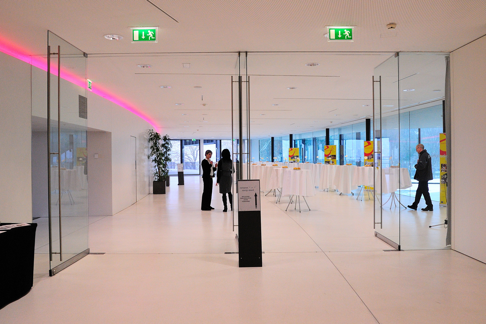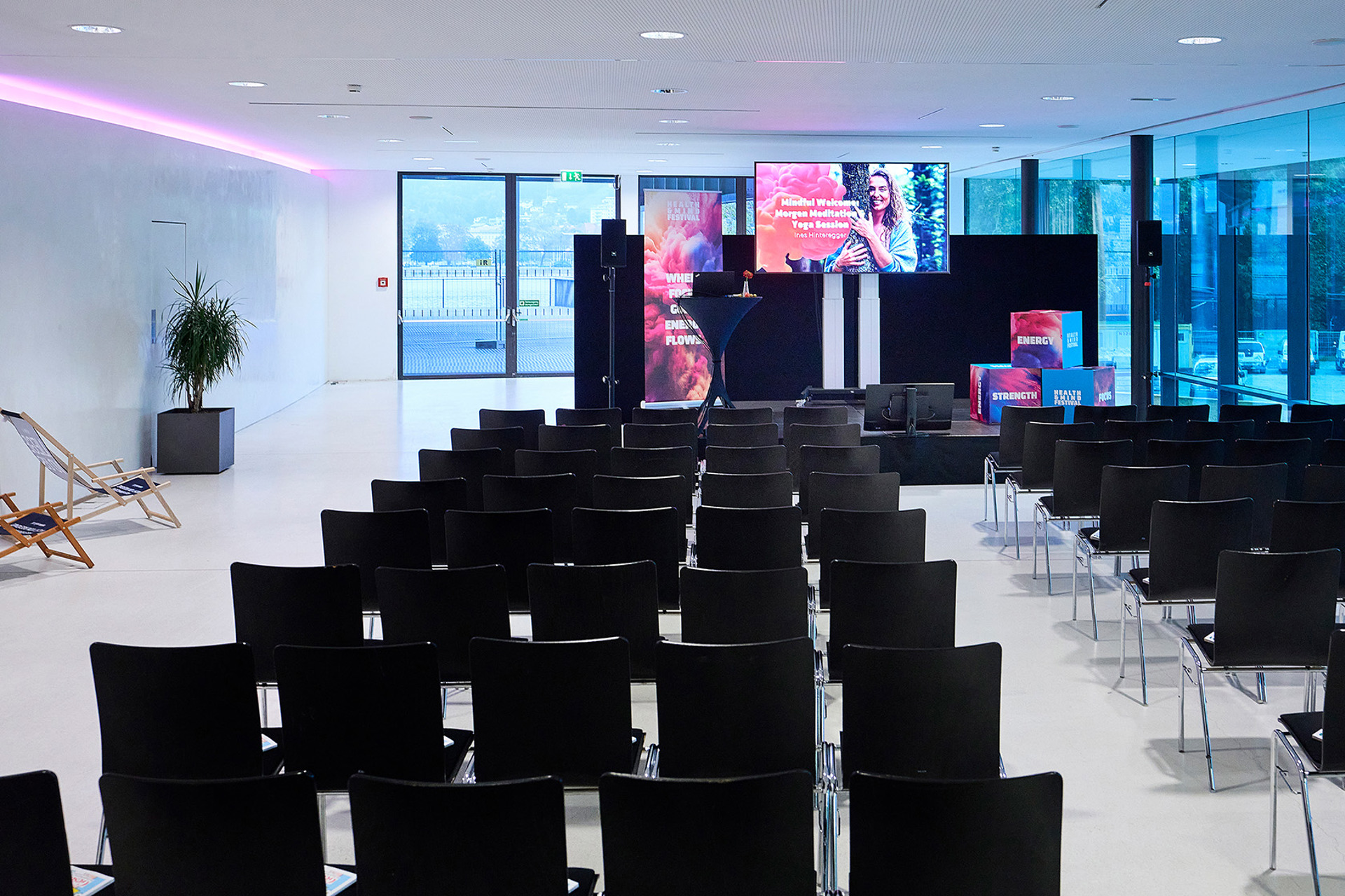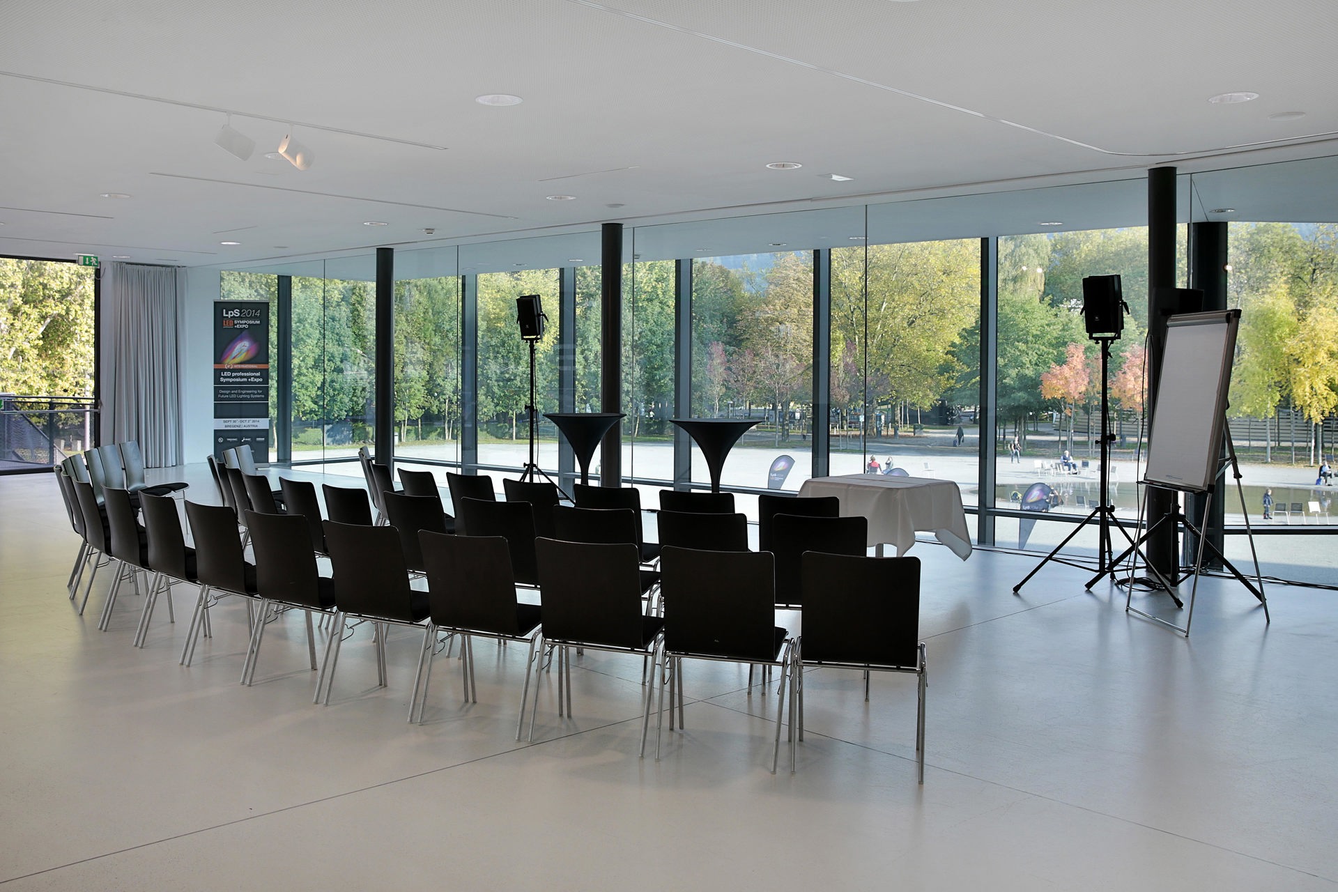 The Parkstudio, right next to the main entrance, is a real eye-catcher. Fully glazed on two sides, it offers a view of the plaza and the Bregenz bay. With direct access to the roofed terrace of the lake stage auditorium, it offers a unique atmosphere for events.