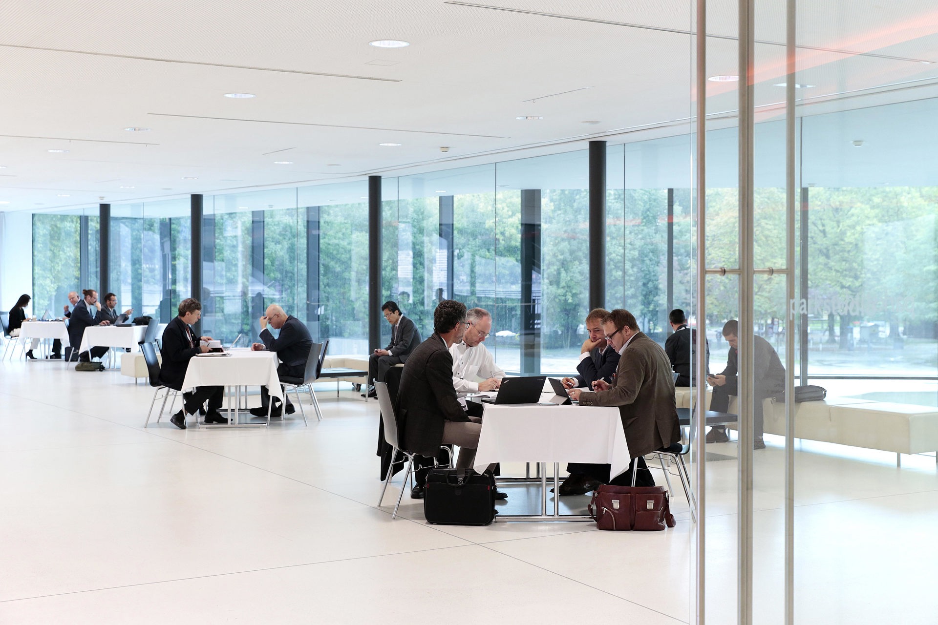The versatile, 30-metre-long room is particularly suitable for smaller meetings, presentations and training sessions, but it can also be easily adapted by our team to hold exhibitions or serve as a catering area. The Parkstudio is special also for providing access to the covered terrace, which further enhances the ambience for receptions and networking events.