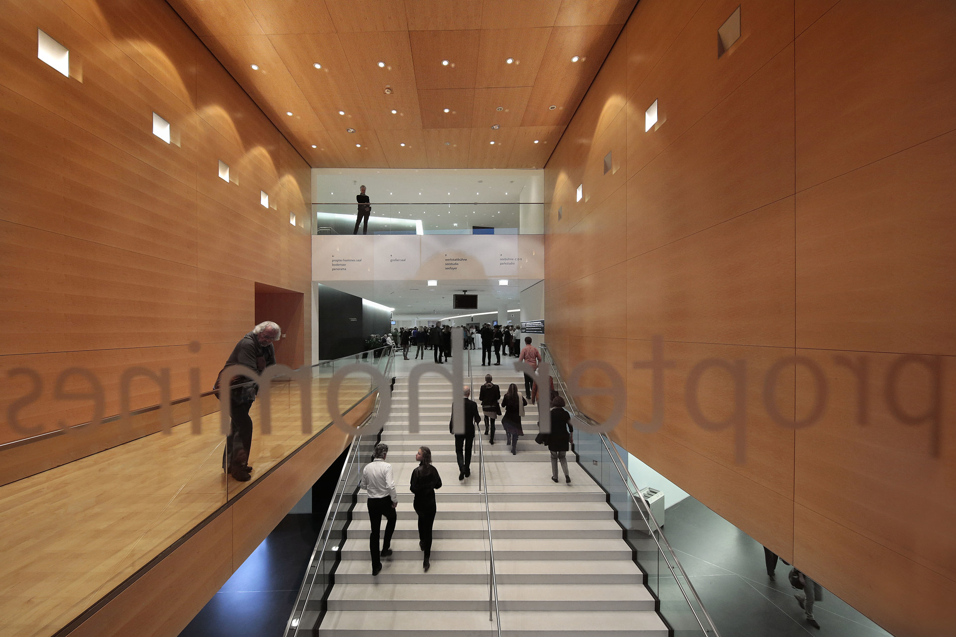 The 360° image of Foyer 1 gives a panoramic look toward the entrance of the Parkstudio and Saal Propter Homines, as well as down the main staircase into the Eingangsfoyer.
