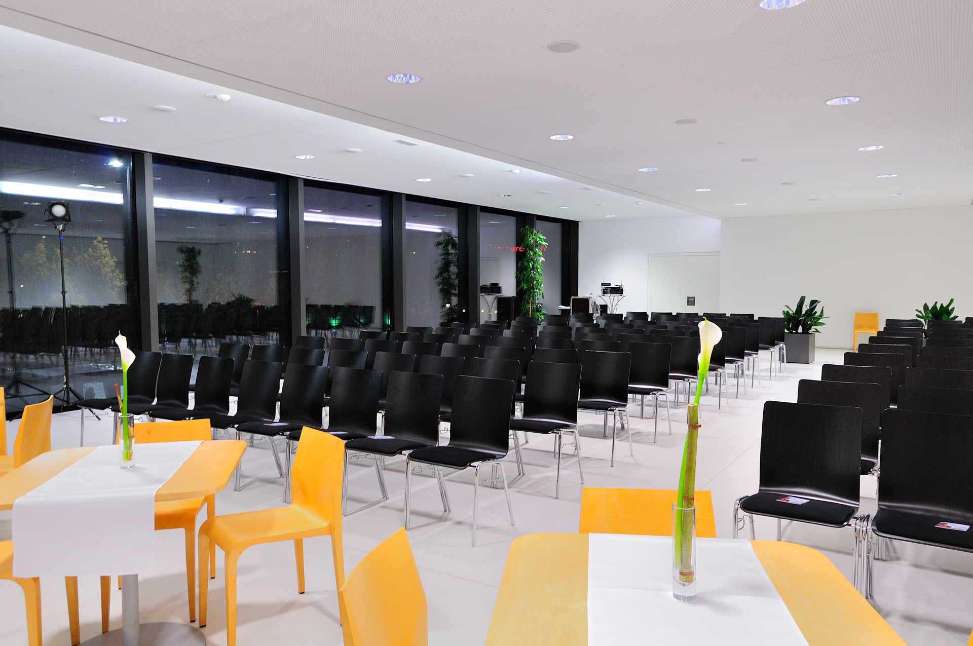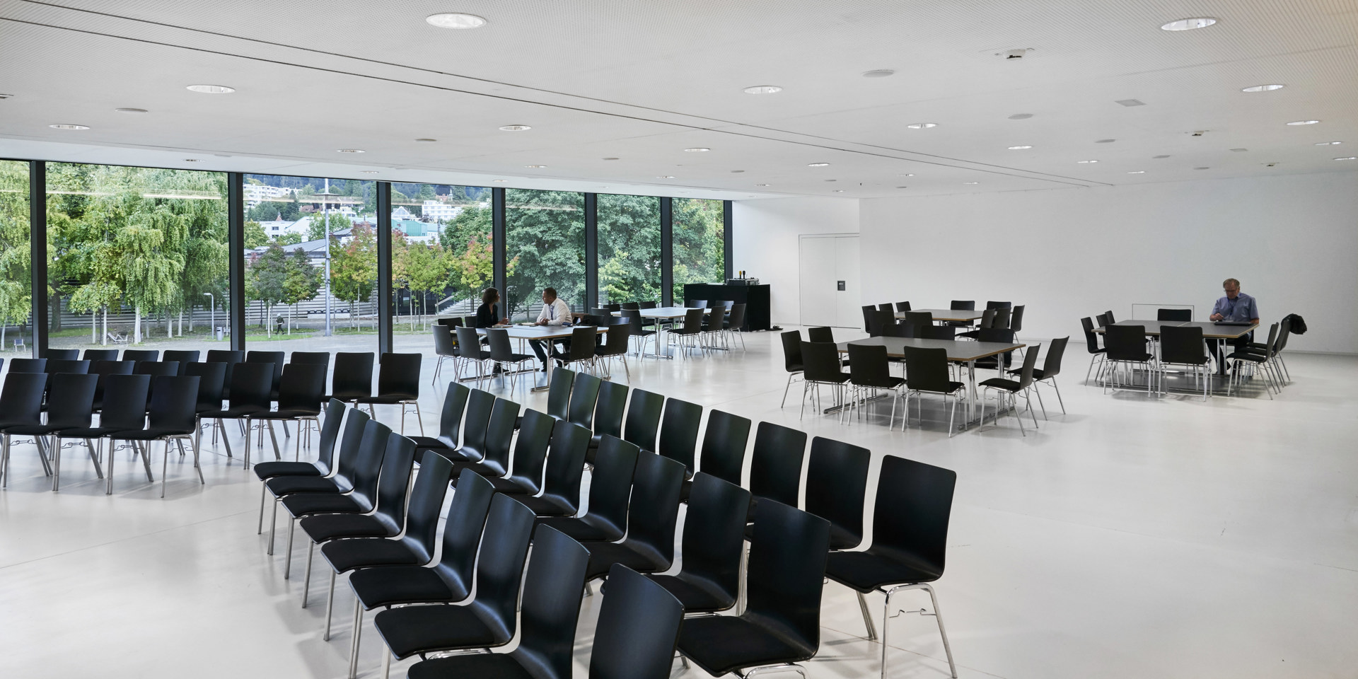 If you’re searching for an event setting that’s secluded and self-contained, then combining the Saal Bodensee and the Saal Panorama is an ideal solution. These directly adjacent rooms can be joined to create a private area in the Festspielhaus.