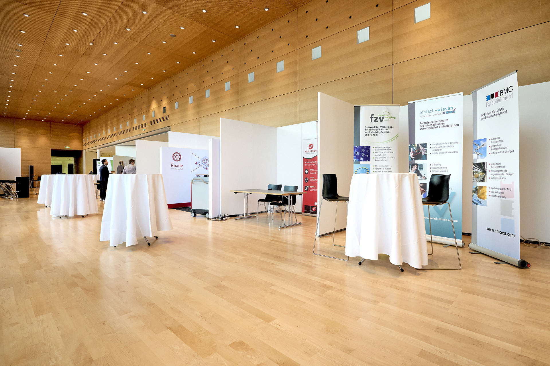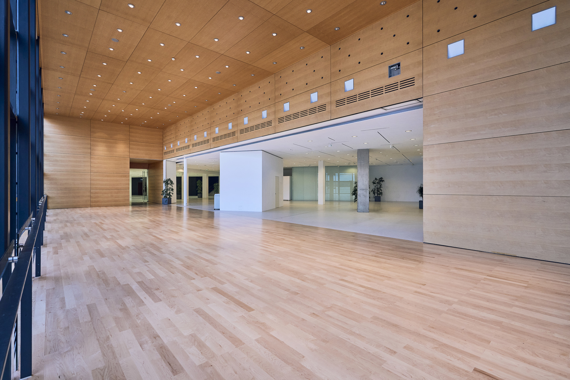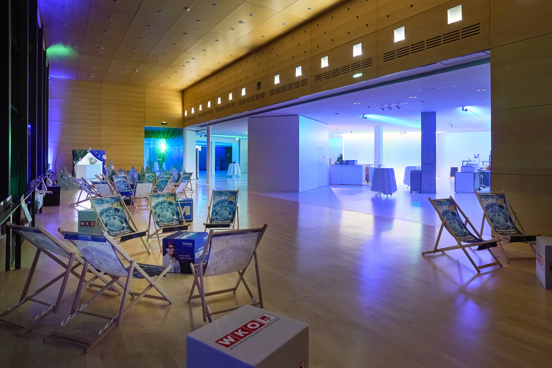The room, which can accommodate a maximum of 300 people, has a modern flair thanks to its elegant design. The glass facade that extends the length of the room is equipped with a shading system. If required, the space can be extended into Foyer 2 – ideal for large corporate events, presentations and conventions with accompanying exhibitions or trade fairs. A freight elevator serves the room, like the whole of Level 1, facilitating logistics for exhibitors.