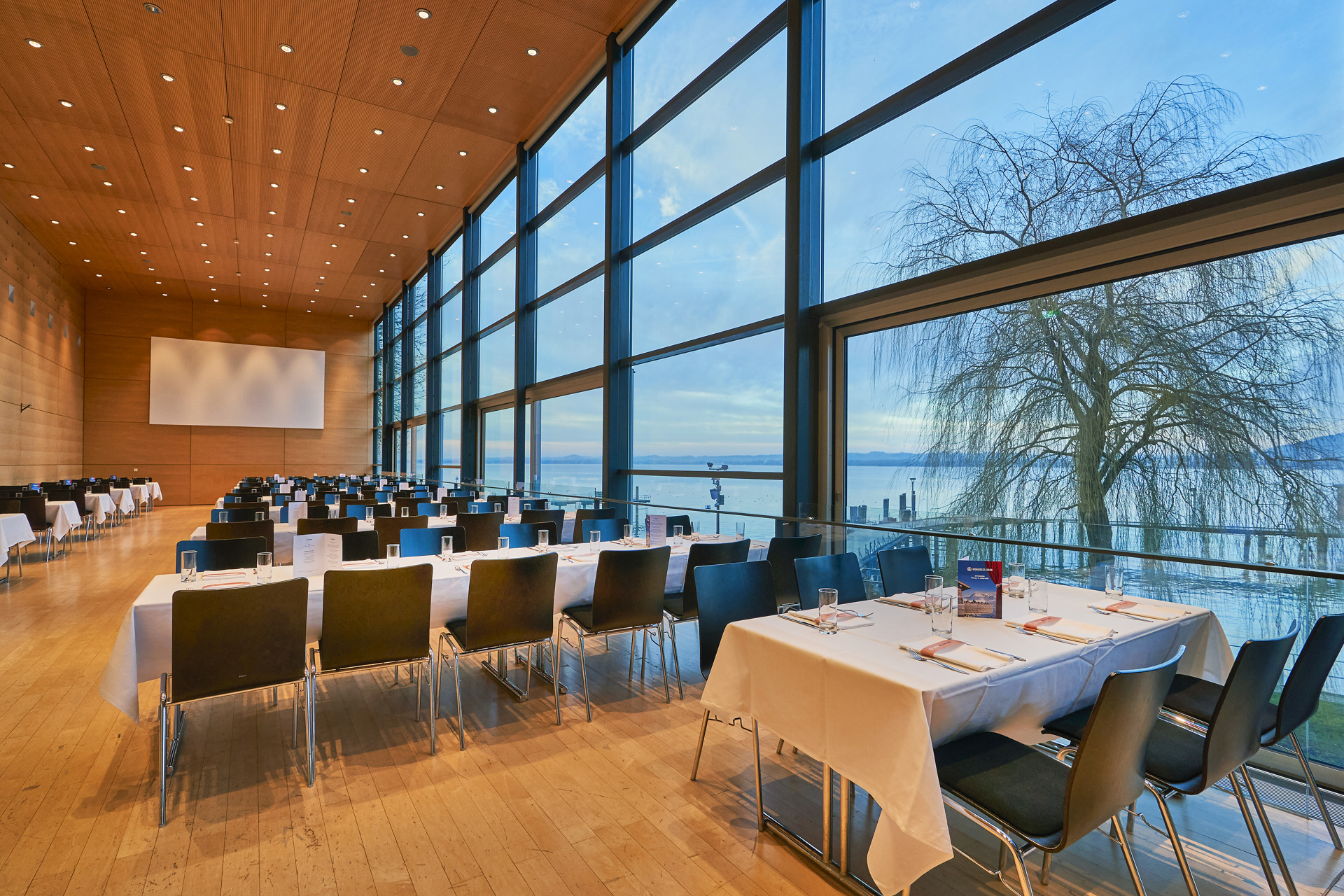 Thanks to its flexible design options and exclusive location, the Seefoyer is perfect for your next big event, whether as a conference room or a venue for a gala evening with breathtaking views of sunsets over the lake!