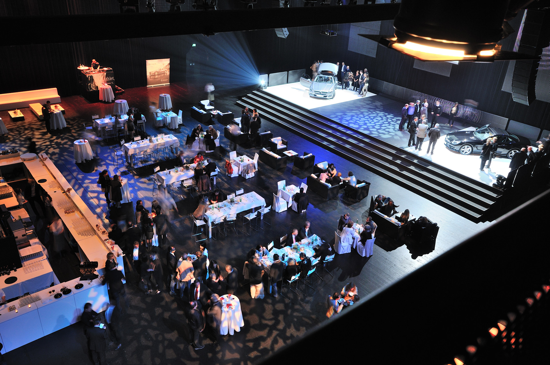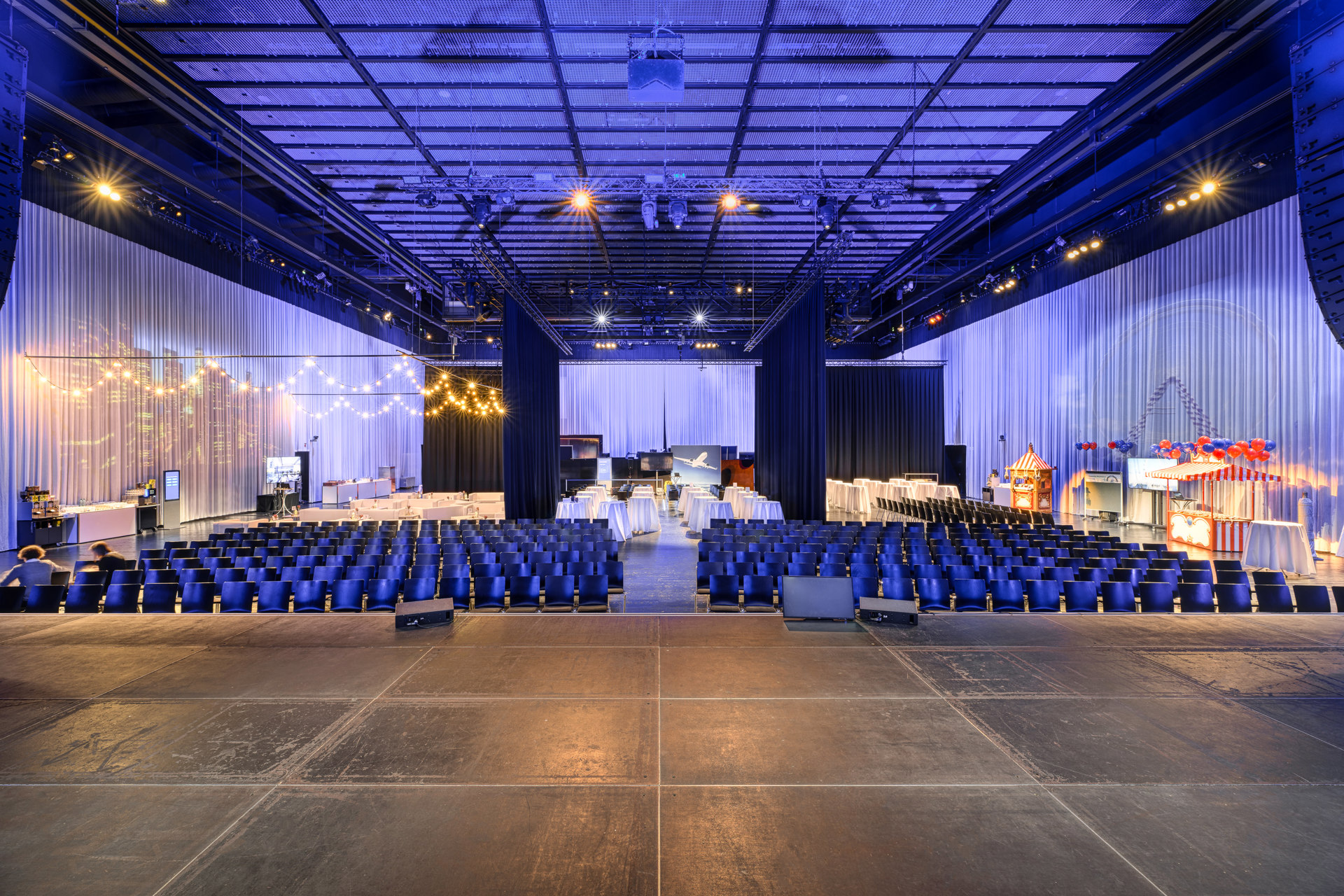 45 by 37 metres of floor space are at your disposal. With these dimensions and its facilities, the Werkstattbühne has no parallel in the region. The multifunctional black box creates the ideal conditions for every occasion thanks to what it’s capable of in terms of staging, decor and facilities. It features a grid floor that spans a large part of the space and can support suspended loads of up to 37.5 tonnes. It also comes with a mobile control tower, a six-metre-wide and nine-metre-high drive-in bay for small trucks, and can accommodate decor up to nine metres in height. Whatever the requirements – pop or rock concert, business forum, product presentation, ball, or trade fair – the congress centre can handle even large-scale events thanks to the Werkstattbühne. Two indoor cranes on the side stages make it easier to set up large structures.