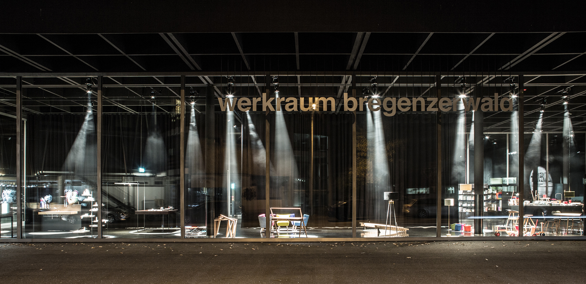 Kongresskultur Bregenz is a partner of the Werkraum Bregenzerwald – a modern exhibition space displaying regional crafts. It made 30 theatre spotlights available for the current exhibition, installed with the help of lighting director Reinhold Müller and his team of technicians.